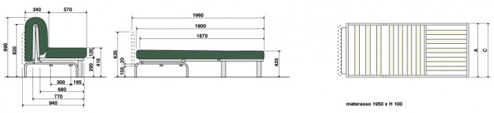 Meccanismo ad apertura frontale tramite scorrimento, dotato di attacchi per braccioli e schienale.